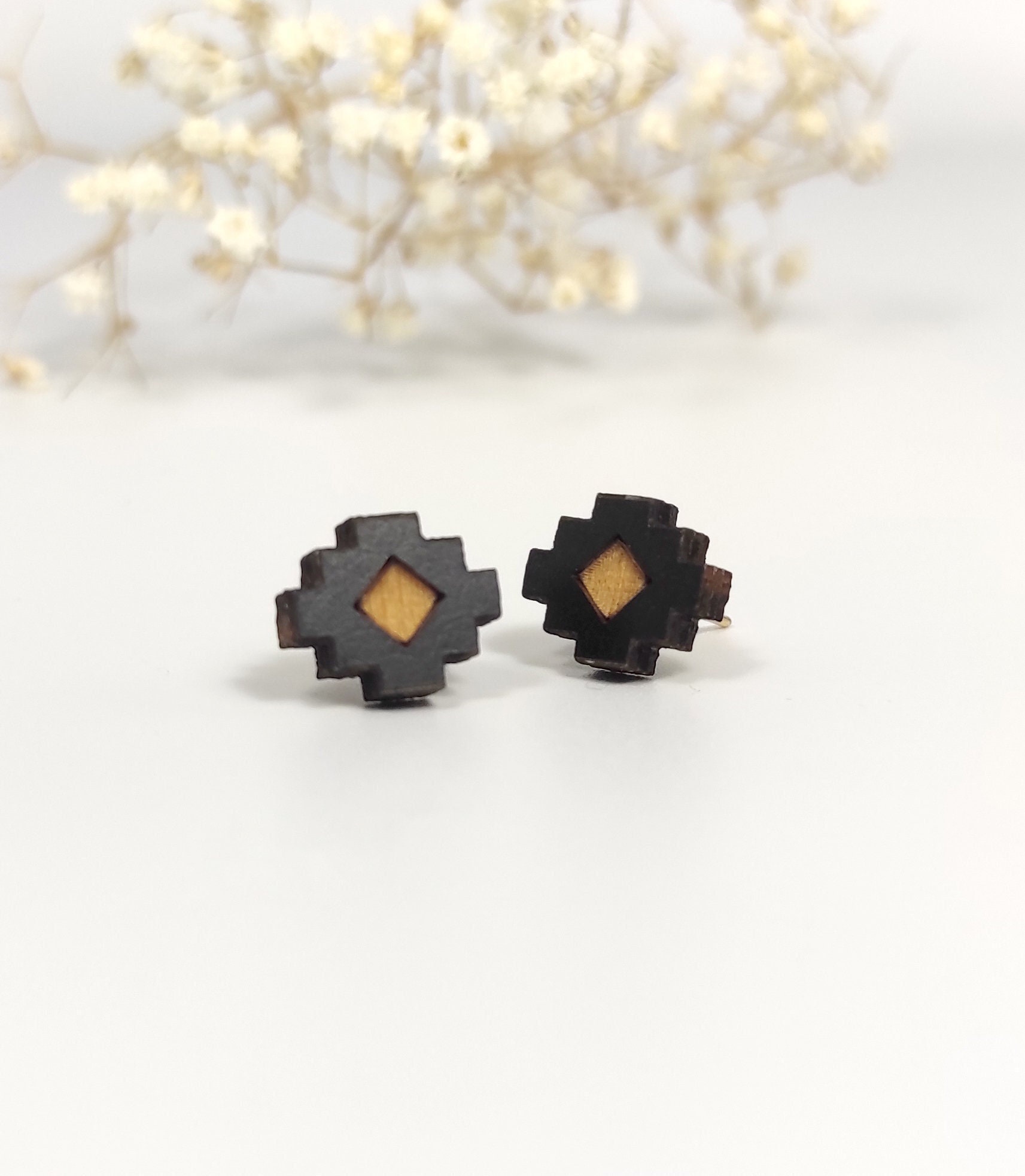 These stud earrings are hand-painted using a special technique that gives each piece its own unique character. They are laser-cut from 3mm birch plywood.