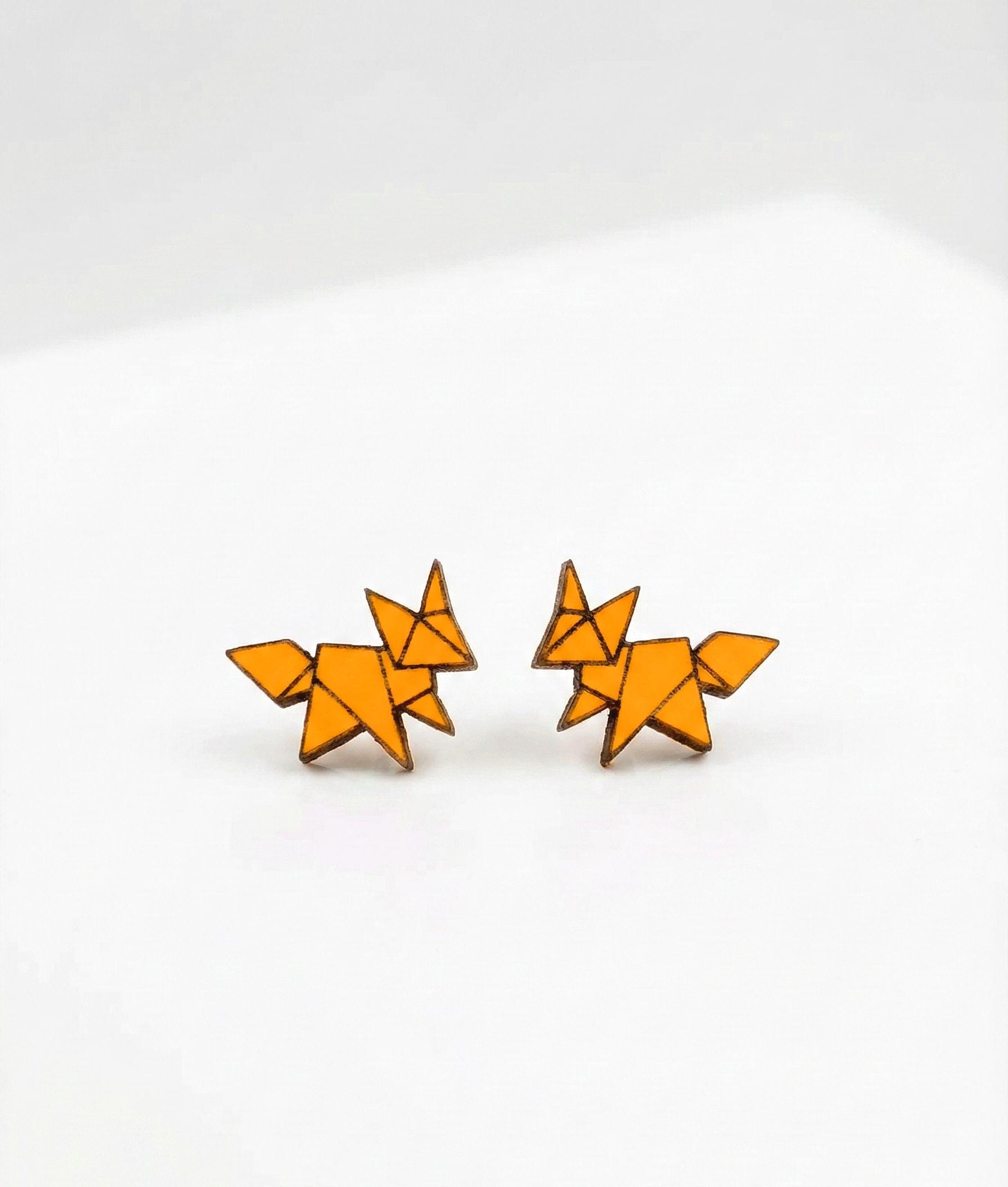 These stud earrings are hand-painted using a special technique that gives each piece its own unique character. They are laser-cut from 3mm birch plywood.