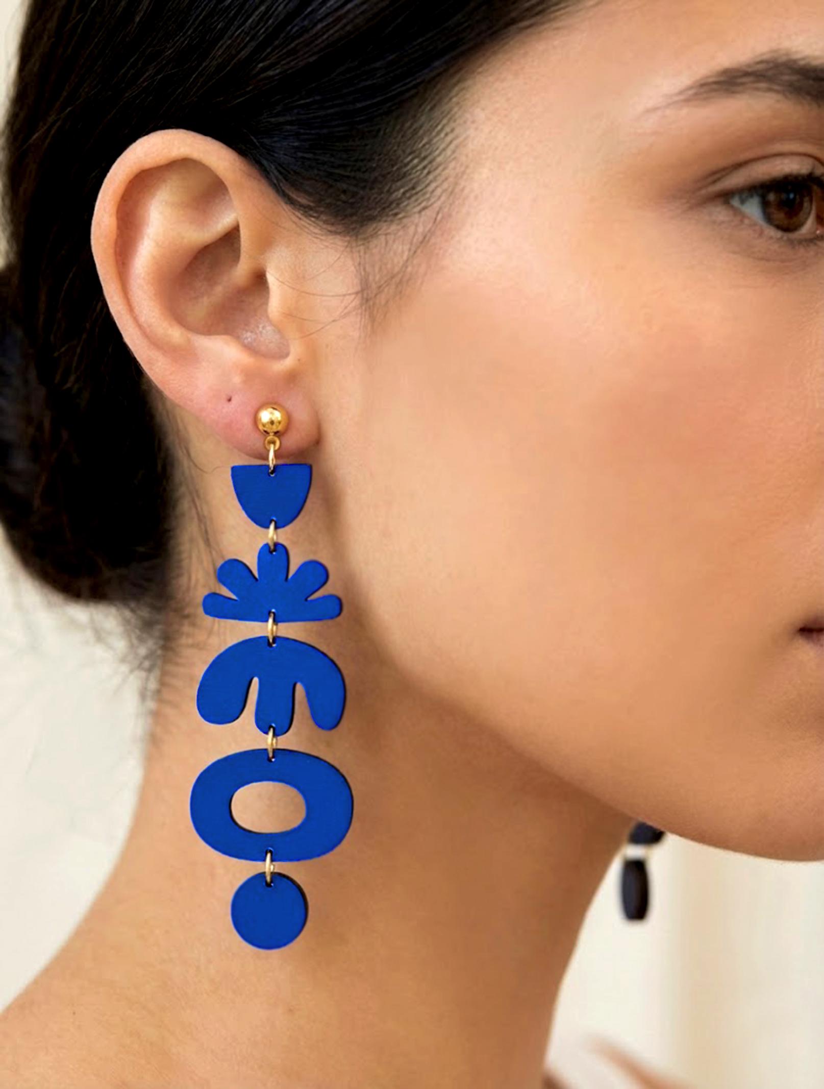 These Henri Matisse Inspired Wooden Drop Earrings are hand-painted using a special technique that gives each piece its own unique character. They are laser-cut from 3mm birch plywood.