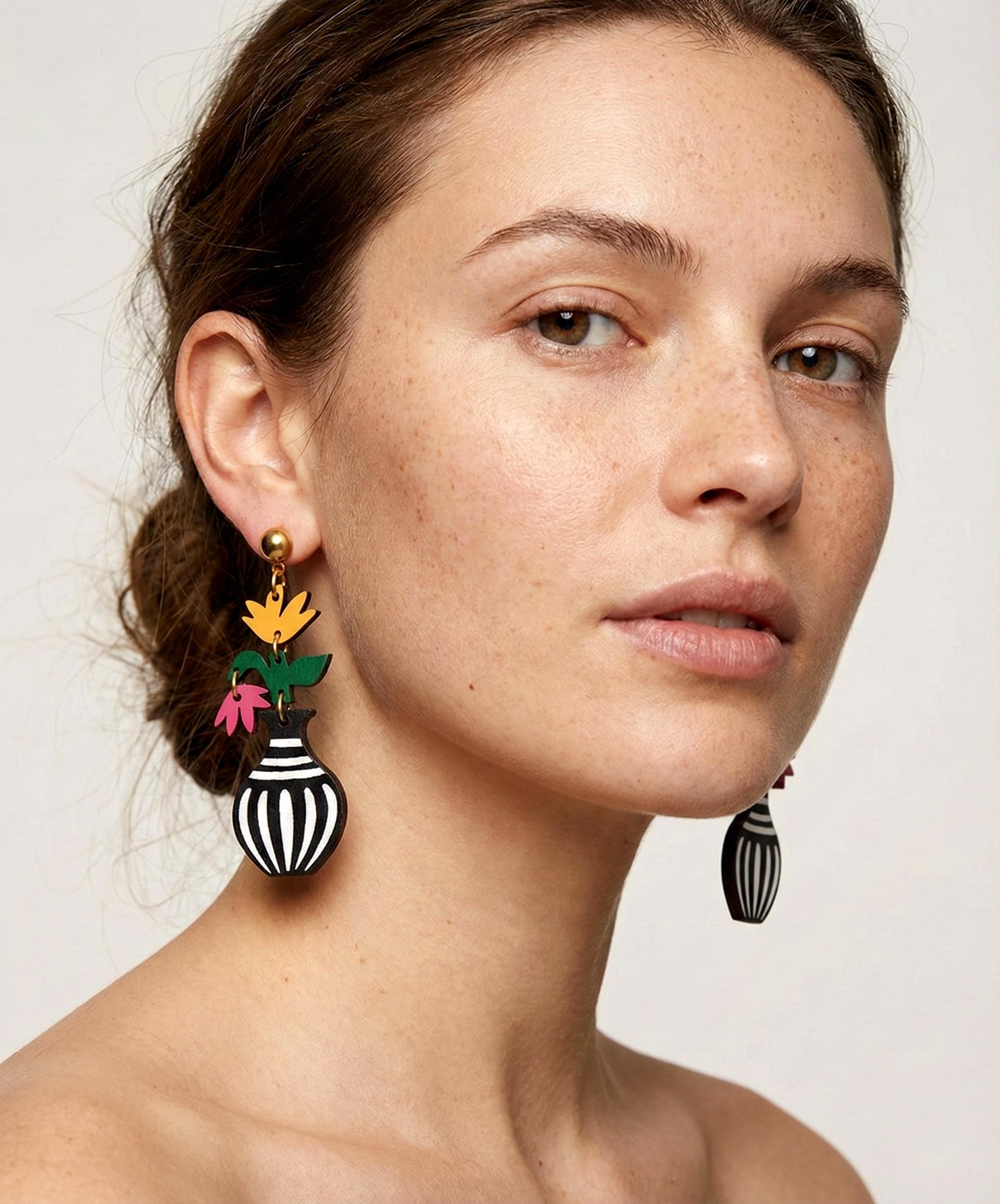 Bloom with elegance! These handcrafted wooden earrings feature a delicate flower-in-a-vase design, perfect for nature lovers and those who adore unique, lightweight jewelry.