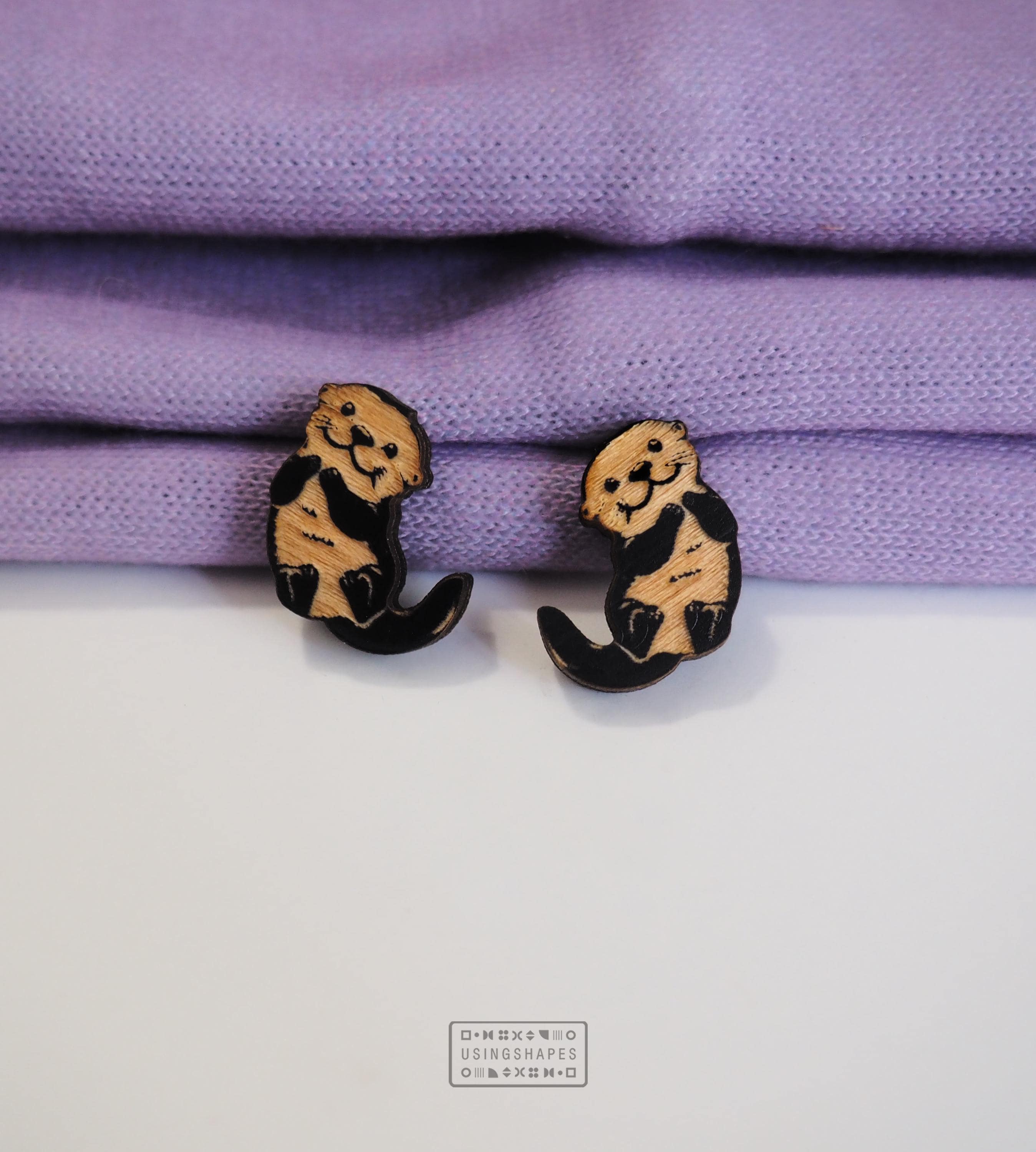 These Otter stud earrings are hand-painted using a special technique that gives each piece its own unique character. They are laser-cut from 3mm birch plywood.