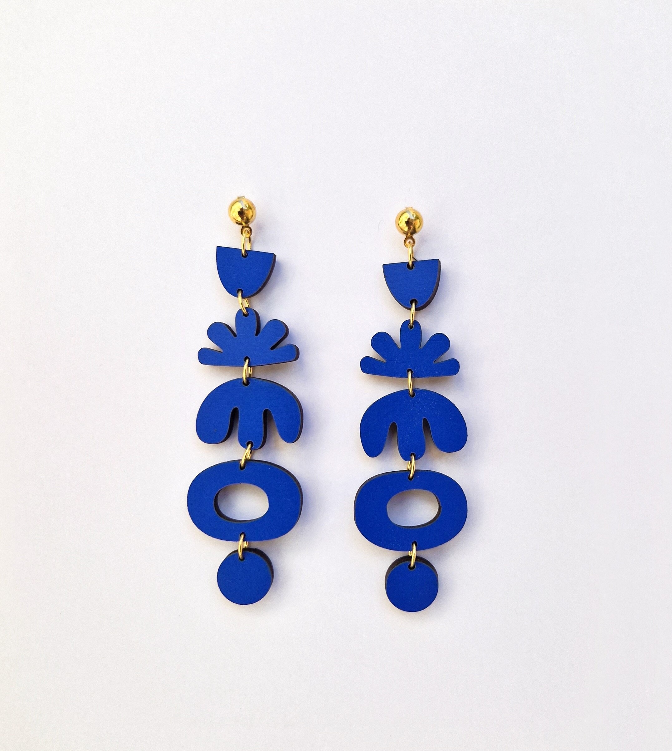 These Henri Matisse Inspired Wooden Drop Earrings are hand-painted using a special technique that gives each piece its own unique character. They are laser-cut from 3mm birch plywood.